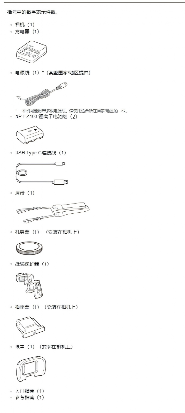 1. 传感器:全画幅Exmor R CMOS,有效像素≥6100万; 2. 处理器:BIONZ XR影像处理器; 3. 对焦系统:759点相位检测对焦,支持眼部对焦(人/动物/鸟类); 4. 视频能力:8K 24p/4K 60p视频录制,10-bit 4:2:2内录; 5. 显示屏:3.2英寸可翻折触控LCD,分辨率≥235万像素; 6. 其他:内置5轴防抖,双卡槽,支持Wi-Fi/蓝牙传输,含2块原装电池、充电器及数据线 |
