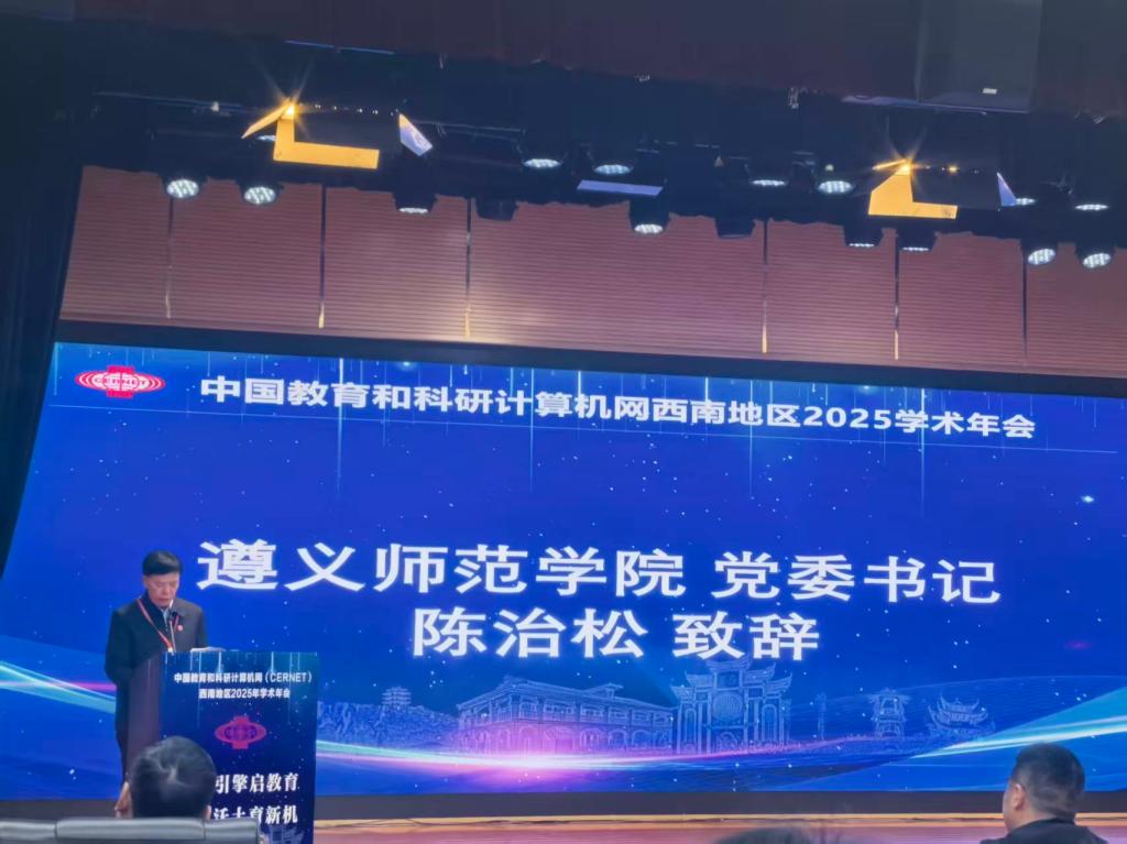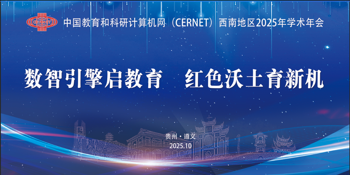 2025年10月24日,由中国教育和科研计算机网(CERNET)主办、遵义师范学院承办的中国教育和科研计算机网西南地区2025学术年会在贵州遵义师范学院隆重召开。贵州中医药大学网络管理科科长何顺义、应用系统运维科副科长赵梅应邀参会。来自西南地区各高校、教育信息化管理机构及科研单位的专家学者齐聚一堂,围绕“数智引擎启教育,红色沃土育新机”的主题,共同探讨教育数字化转型与科研网络创新发展的新路径。